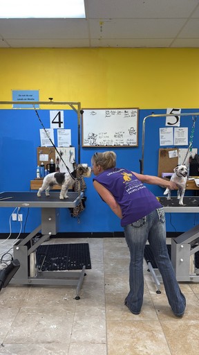 Our curriculum is designed to prepare students for real-world grooming careers through hands-on experience and practical education. We cover: - Everyday pet grooming - Breed-specific grooming techniques - How to determine the most flattering haircut for mixed-breed pets - Cat grooming (optional for students) - An introduction to creative grooming – including coat coloring and specialty styles In the beginning stages, new students will focus primarily on the body and feet of the pets. This allows them to build essential scissor control, become familiar with handling their tools, and gain confidence using grooming equipment safely and effectively. It's common for an advanced student to review your work and complete the dog's head, offering guidance and demonstrating finishing techniques. Then the instructor will check and approve all work to ensure consistency, learning, and safety. Students who demonstrate strong control and understanding early on may advance more quickly into head work and detailed hand-scissoring tasks. Progress is based on skill, attitude, and instructor approval. In addition to hands-on practice, students will complete minor testing throughout the program. These informal assessments help reinforce understanding of grooming tools, coat types, breed identification, and basic grooming theory. All instruction takes place in a real, functioning grooming salon to simulate real-world grooming scenarios and build practical, professional skills. Students are allowed to groom their own pets once they have demonstrated they can perform the grooming primarily on their own. This must be done on a Tuesday or Wednesday only. If the school is especially busy on a given day, the student may be asked to bring their pet back the next day to complete the grooming.